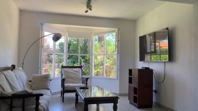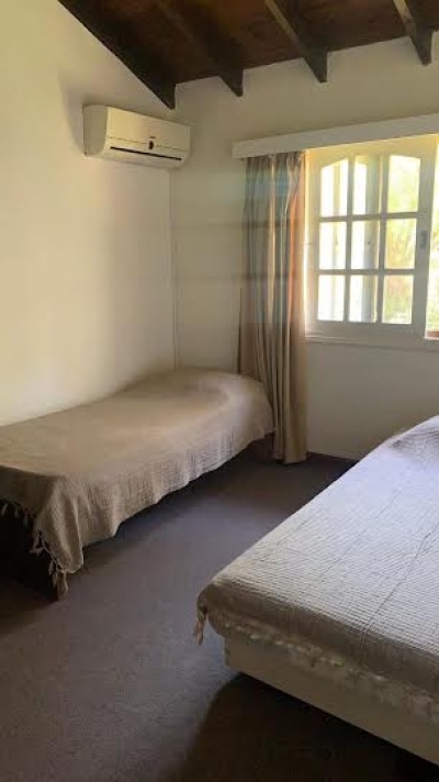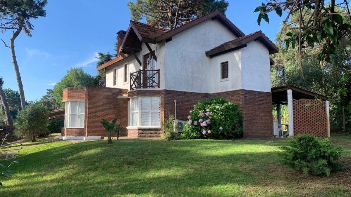 Ubicada en la tranquila y privilegiada zona de Madame Curie, Cantegril, Punta del Este, esta encantadora casa en alquiler ANUAL ofrece un estilo de vida inigualable. Con una superficie total de 210 m2, cuenta con 5 ambientes que incluyen un hermoso living-comedor con estufa a leña, amplia cocina totalmente equipada con pasa-platos hacia el comedor, 3 cómodos dormitorios y 3 baños. La propiedad, que tiene 15 años de antigüedad, se presenta en excelente estado y está diseñada para disfrutar de la calidez del sol gracias a su orientación norte.